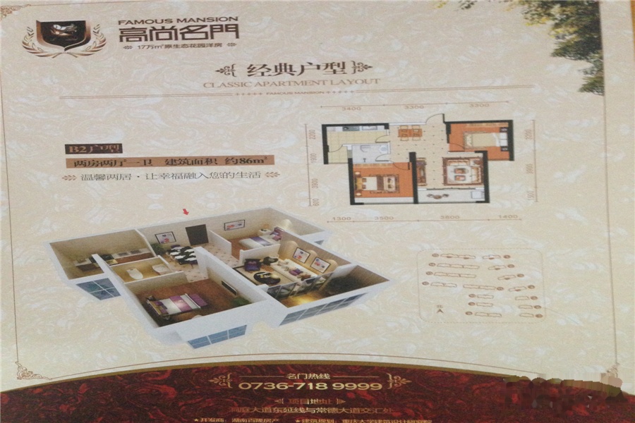2室2厅1卫-高尚名门—B2户型 两房两厅一卫 86平方米