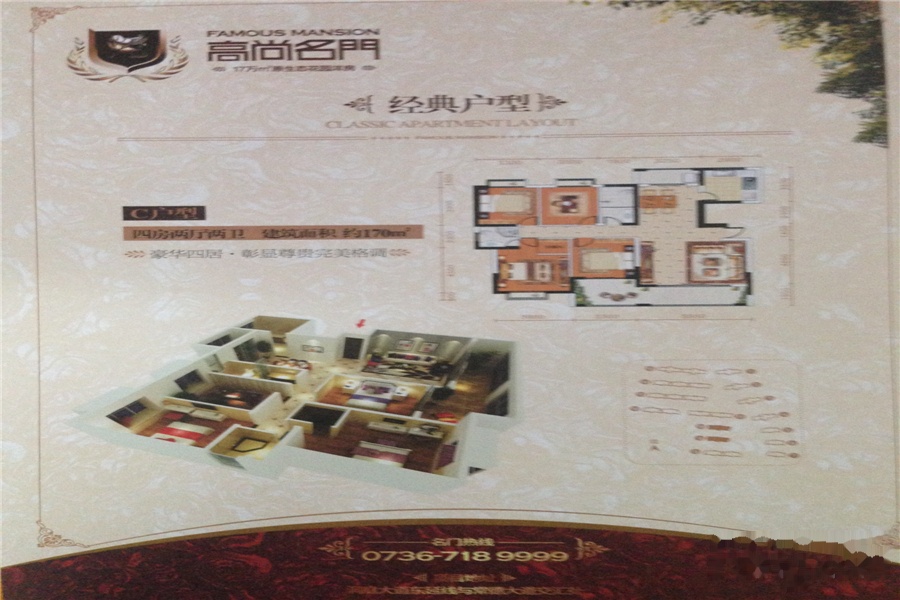 4室2厅2卫-高尚名门—C户型 四房两厅两卫 170平方米