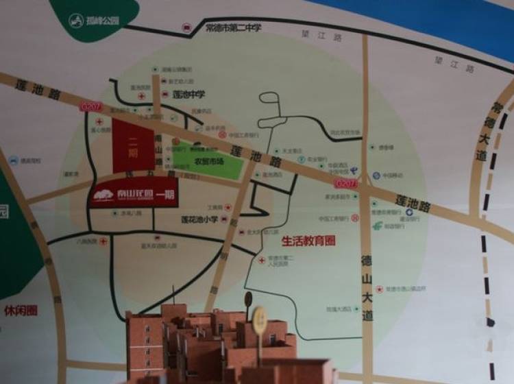 学校:莲池小学 莲池中学 新艺幼儿园 综合商场:家润多超市、晒谷岭社区超市 银行:中行 农行 建行 工商 医院:市第二医院 莲池医院 休闲娱乐设施:德山森林公园 餐厅:莲池酒店 邮局:中国邮政