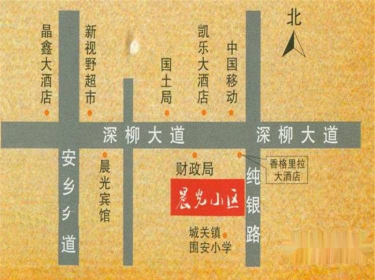 安乡一中、城北中学、城北小学、恒生超市、香港步行街 小区内实现人车分流,中央环形车道与中 庭绿化景观,多层与高层的完美结合,使小区布局合理、错落有致。 小区外墙使用优质墙砖,品牌塑钢窗、双层中空玻璃,内墙则使用新型保温材料。