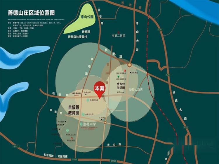 善德山庄是常德市德山经济开发的重点建设项目,善德山庄位于德山经济开发区,有德路以南、乾明路以西,项目位置优越,交通便利,环境幽静,善德山庄是生活居家的理想之所。