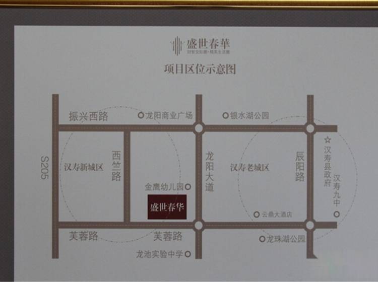 盛世春华花位于汉寿主干道芙蓉路,东临龙阳路,与老城区接壤,沿芙蓉路分布有云顶酒店、芙蓉商业广场、龙珠湖公园;紧靠项目北面是集超市、餐饮、家居、服饰等于一体的龙阳商业广场,法院、检察院等都集中在此;另外,汉寿师资力量雄厚的龙池实验学校也就在这里。盛世春华继续往前对接S205,进出汉寿非常便捷。