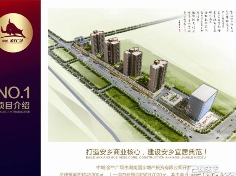 由湖南国宇地产投资有限公司打造的安乡城市新地标——中城·金牛广场。毗邻浙江路、文昌路和围庵路,近望深柳大道、子龙车站,一期总建筑面积37000㎡,其中商业面积12000㎡! 打造安乡商业核心!中城·金牛广场吸取大中型城市的成功经验,打造“大商业、大街区”。完全打破以往“街区小、铺面杂、人流散”的老城商业模式,全面引进大型品牌家电卖场/连锁超市/精品服饰/品牌餐饮/酒吧等业态,形成真正的商业综合体。 建设安乡宜居花园,中城·金牛广场配置“空中花园+入户花园”双花园,全面提升安乡城市居住品质!依托良好的配套条件,轻松送孩子上学、出门逛超市、看电影、吃美食……生活精彩轻松!