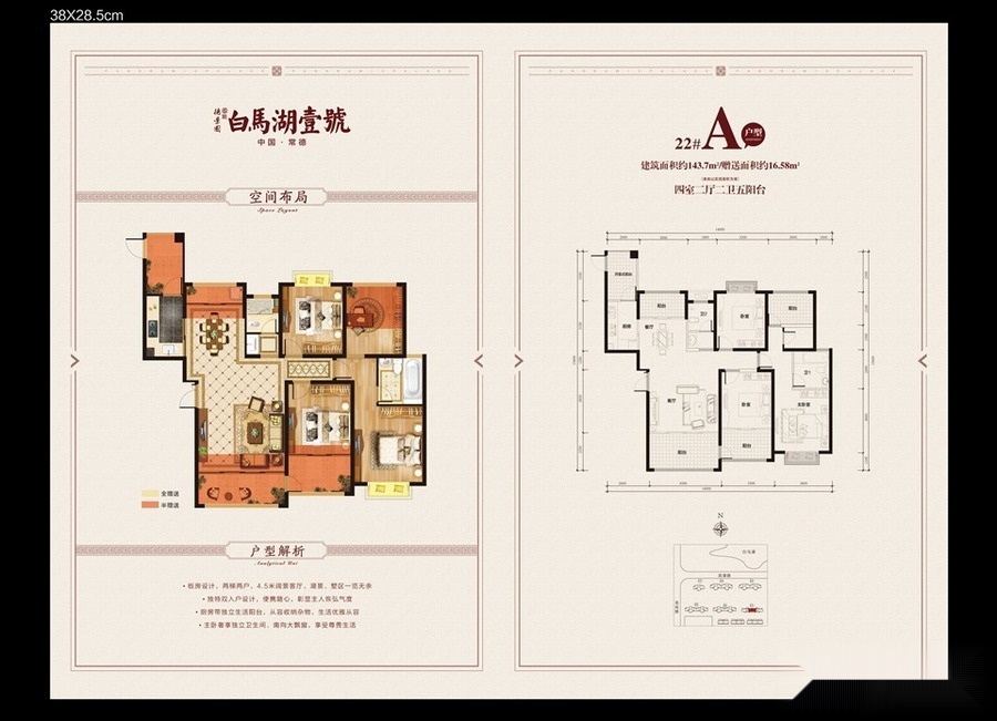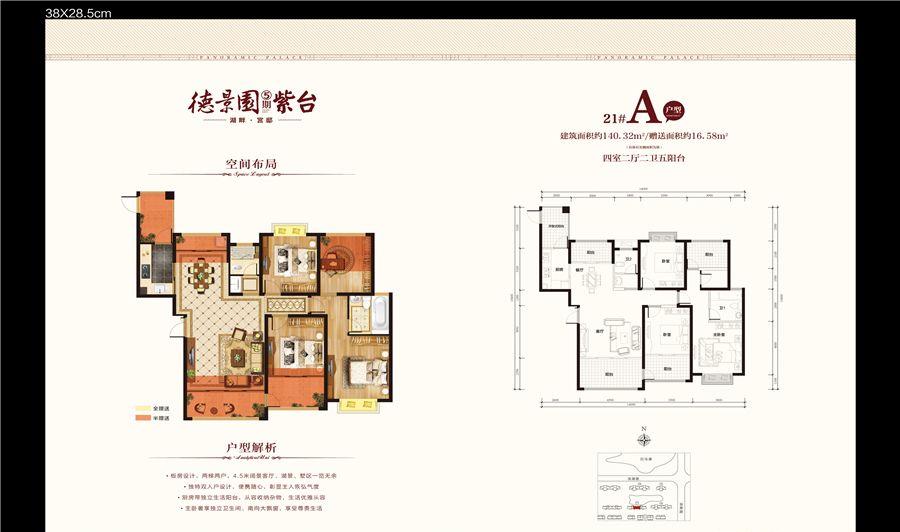 4室2厅2卫-德景园户型-22#A型143.7㎡四室二厅二卫五阳台