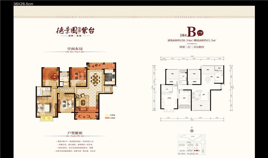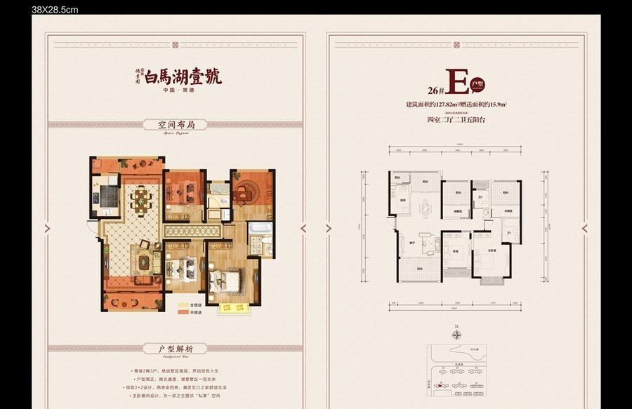 4室2厅2卫-德景园户型-26#E型127.82㎡四室二厅二卫五阳台