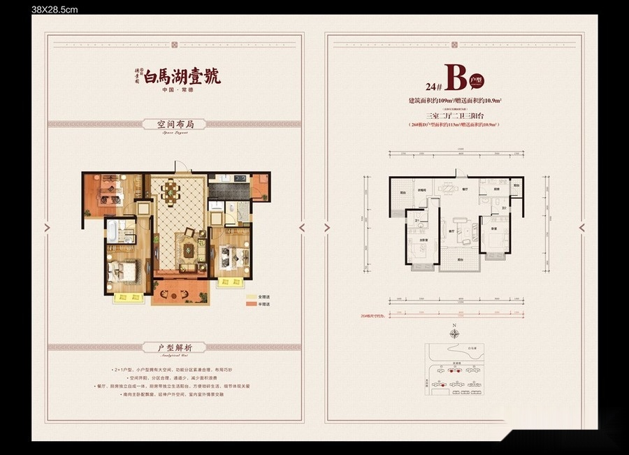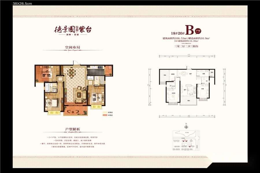 3室2厅2卫-德景园户型-24#A型109㎡三室二厅二卫三阳台