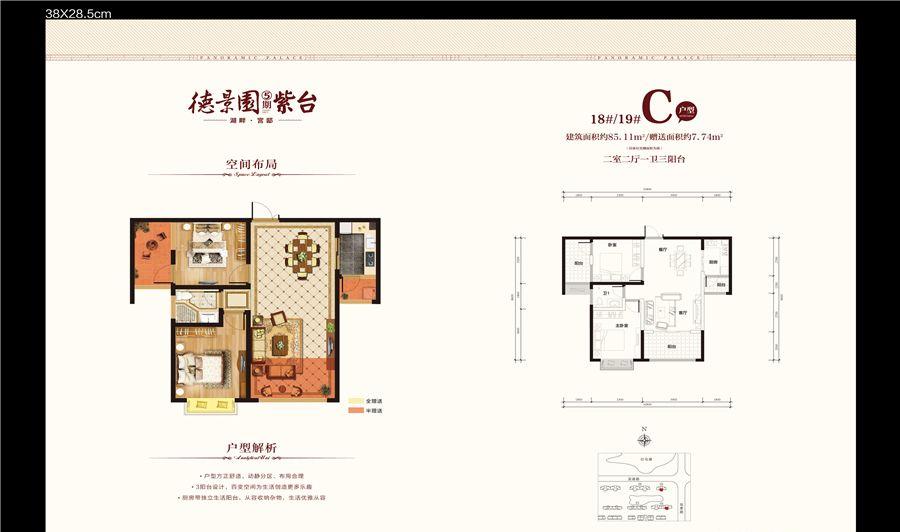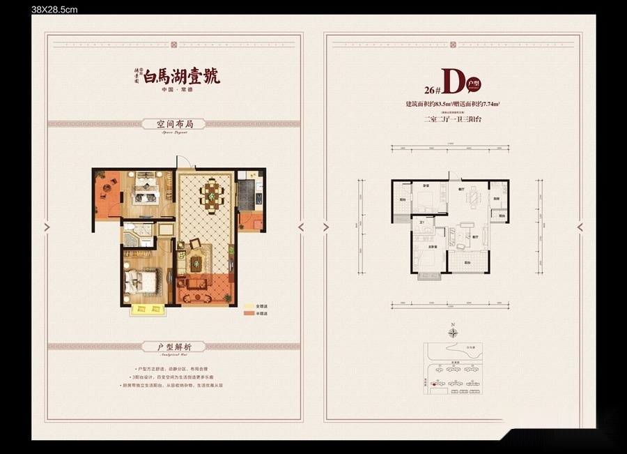 2室2厅1卫-德景园户型-26#D型83.5㎡二室二厅一卫三阳台