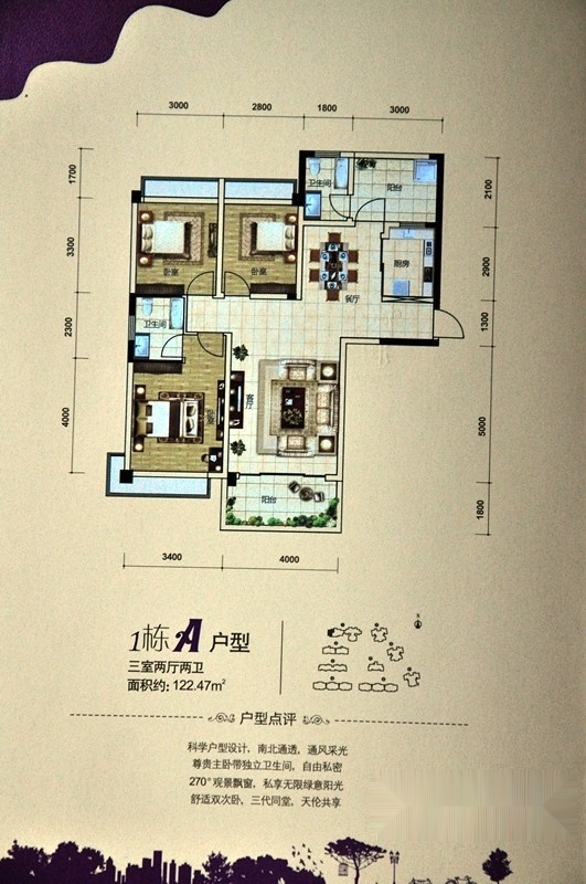 3室2厅2卫-1栋A户型 三室两厅两卫