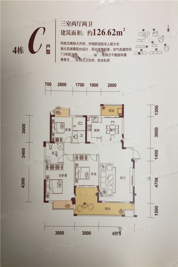3室2厅2卫-4栋C户型 三室两厅两卫