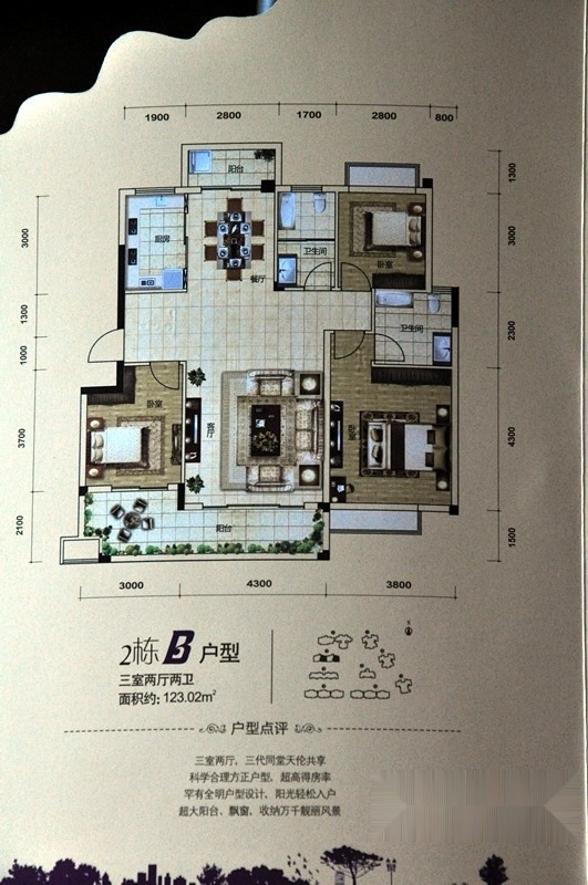 3室2厅2卫-2栋B户型 三室两厅两卫