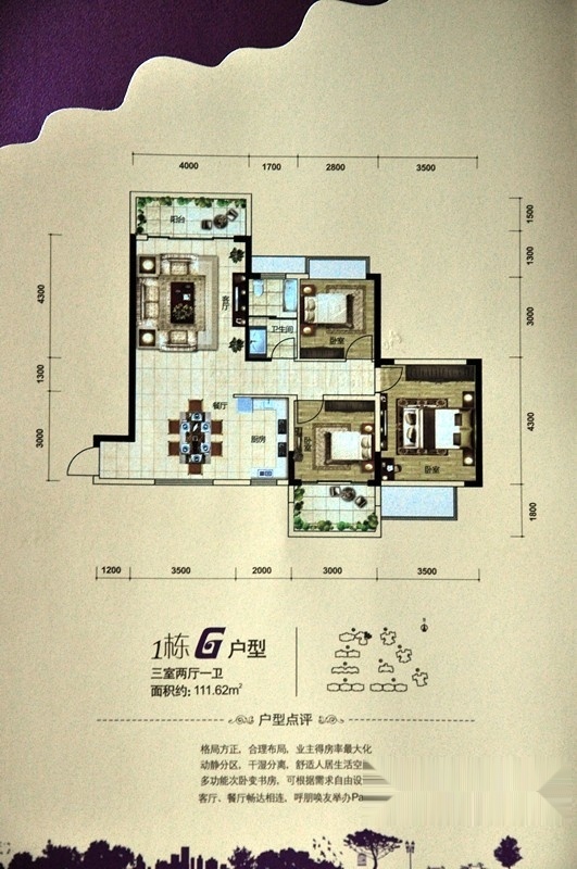3室2厅1卫-1栋G户型 三室两厅一卫