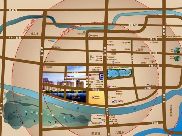 津市新天地,雄踞城市核心地带,位处建设路生产街,好润佳、城隍庙商业街、津市一完小、中国银行、新人民医院、客运站等成熟配套近在咫尺;毗邻历史悠久的澧水河畔,南望风景秀美的皇姑山,尊享一线自然山水资源。 津市新天地,总投资约15亿元,由湖北嘉晟投资集团倾力打造,项目结合百年城市文脉,以 “立城心、造繁华、临水岸、悦生活”为核心,以“商业开放、住宅围合、景观环绕、文化点缀”的设计理念,全面融合商业、住宅、购物、休闲、生态旅游、文化展示为一体,带给津市一种休闲、时尚、精致的全新生活体验。 项目总建筑面积约45万平米,地上建筑面积约35万平米,地下建筑面积约10万平米,其中住宅建筑面积约25万平米,商业建筑面积约10万平米,规划住宅达2000多户,集中居住人口约10000多人,云集4000多家不同类型门店及商铺,现代风情与民国文化相互辉映,将形成真正意义上的“吃、穿、住、玩、购”一站式生活享受。项目建成后,将是津澧地区乃至湘西北区域较具代表性的现代居住及商业旅游项目之一。