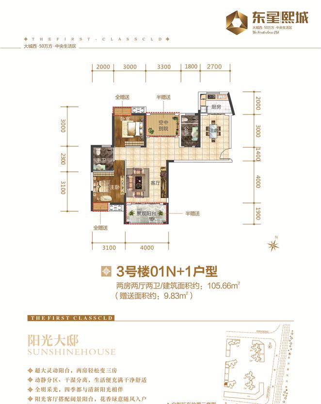2室2厅2卫-东星·熙城—3#01 N+1 两房两厅两卫