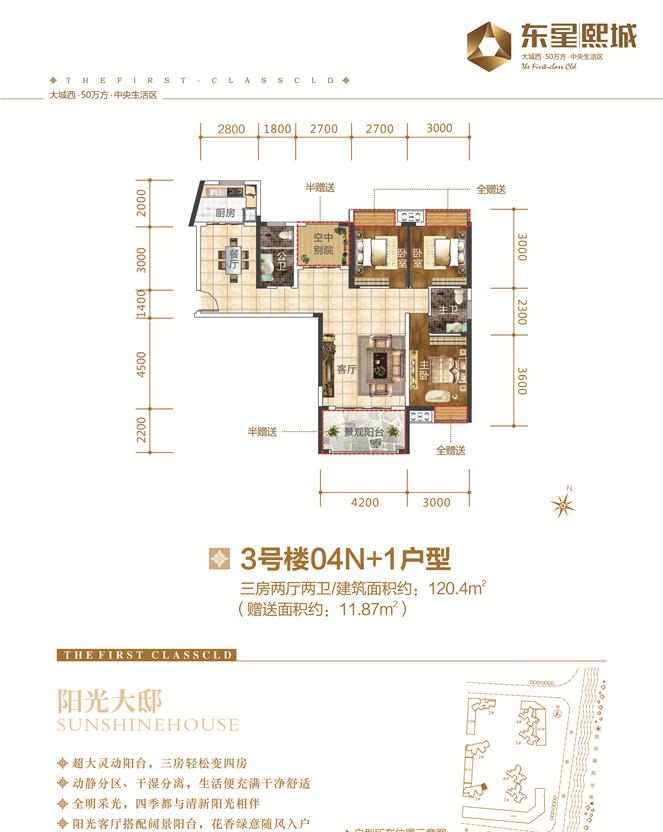 3室2厅2卫-东星·熙城—3#04 N+1 三房两厅两卫