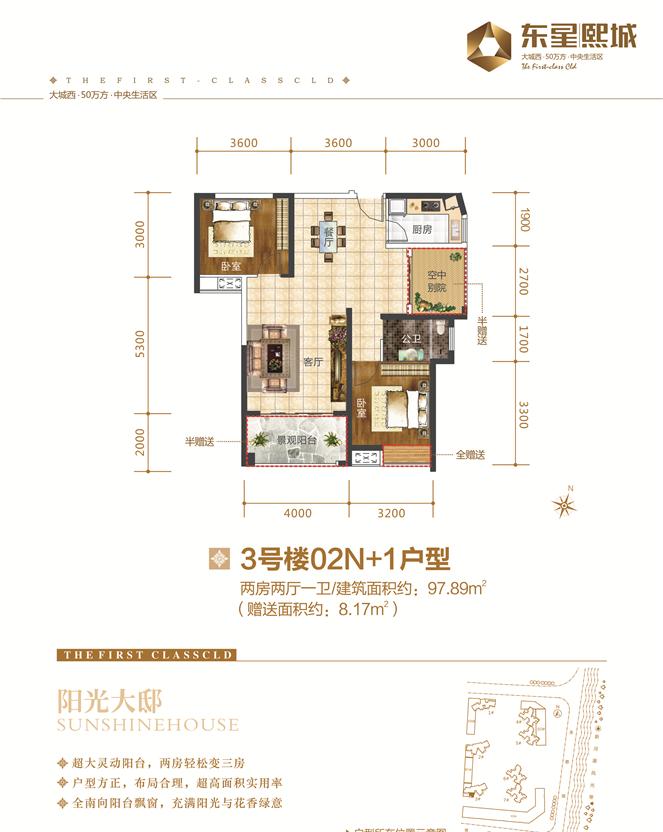 2室2厅1卫-东星·熙城—3#02 N+1 两房两厅一卫