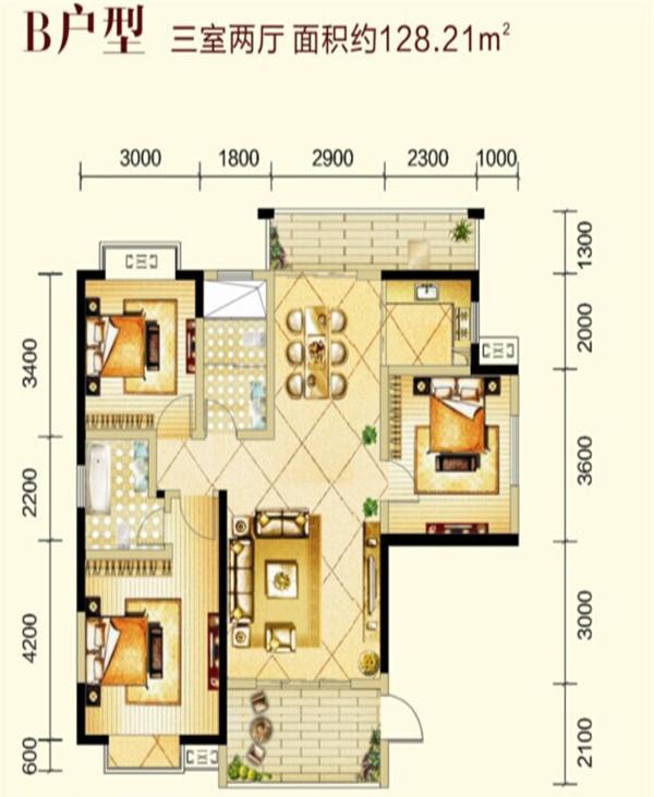 3室2厅2卫-万业城B户型 三室两厅两卫一厨