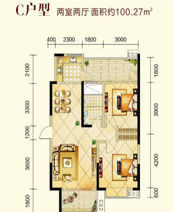 3室2厅1卫-万业城C户型 三室两厅一卫一厨
