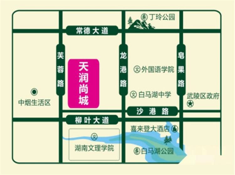 武陵 芙蓉路与柳叶大道交汇处向北约100米处(紫御华庭对面)