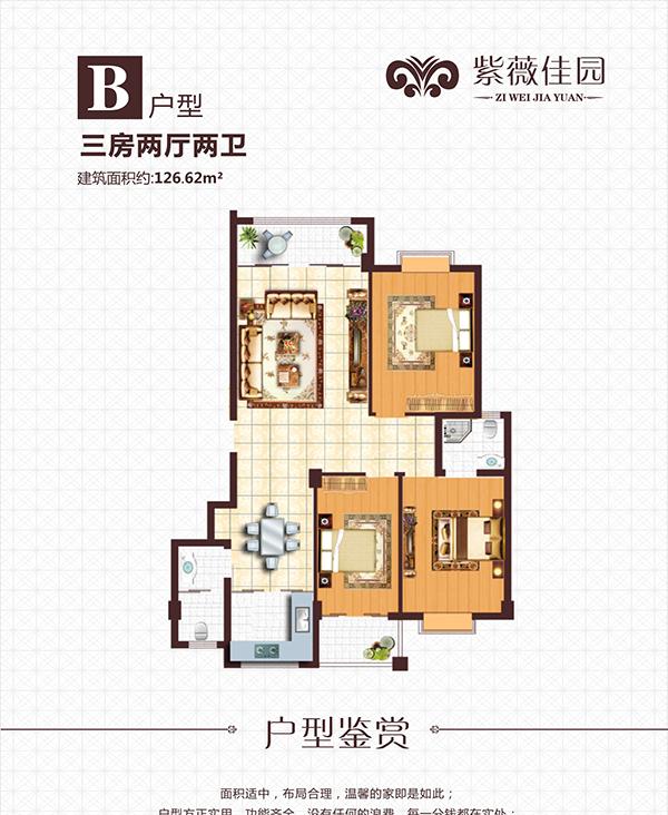 3室2厅2卫-紫薇佳园—户型-B 三室两厅两卫