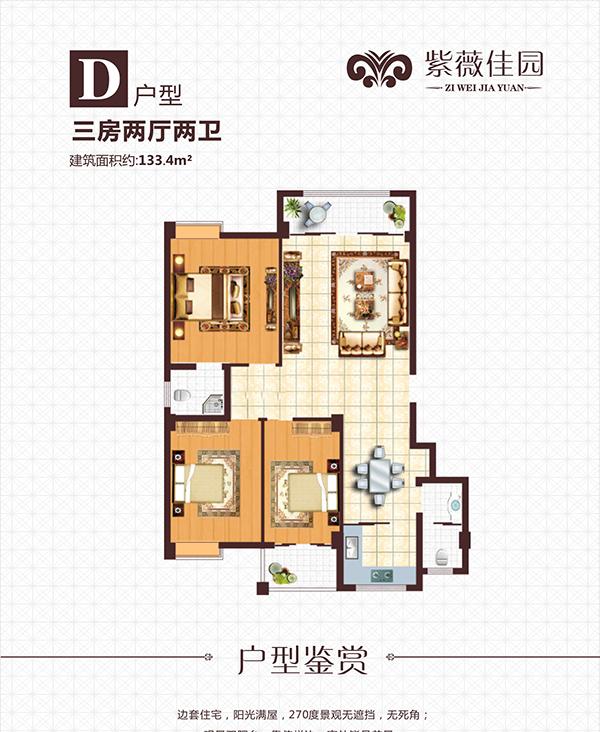 3室2厅2卫-紫薇佳园—户型-D 三室两厅两卫