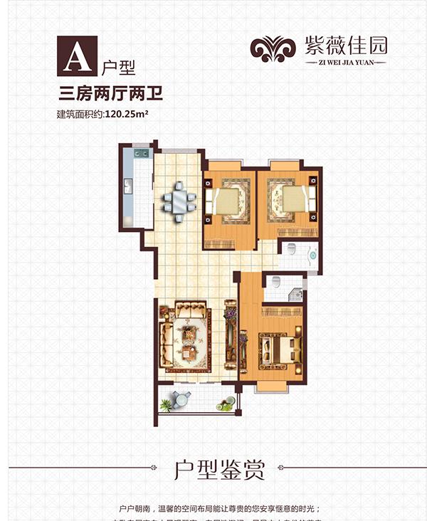 3室2厅2卫-紫薇佳园—户型-A 三室两厅两卫