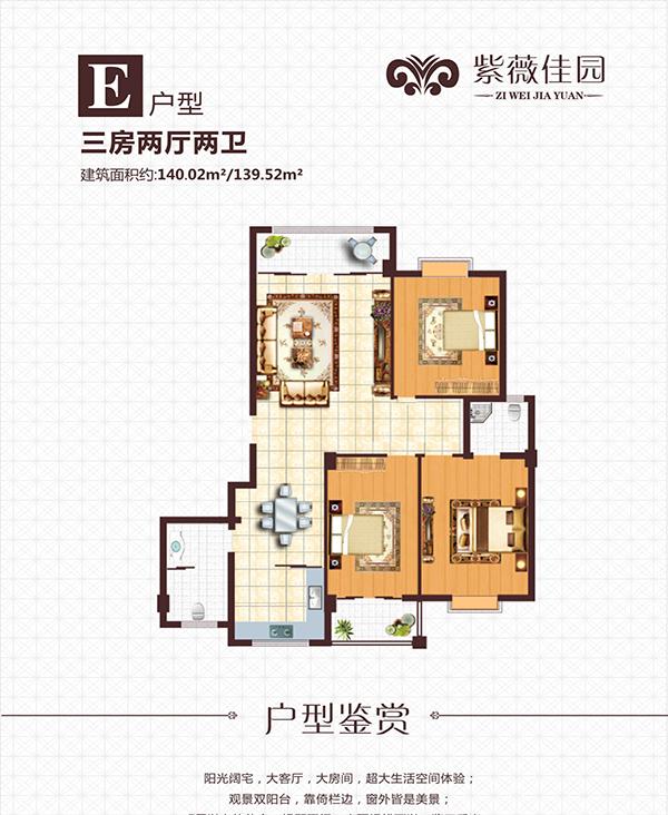 3室2厅2卫-紫薇佳园—户型-E 三室两厅两卫