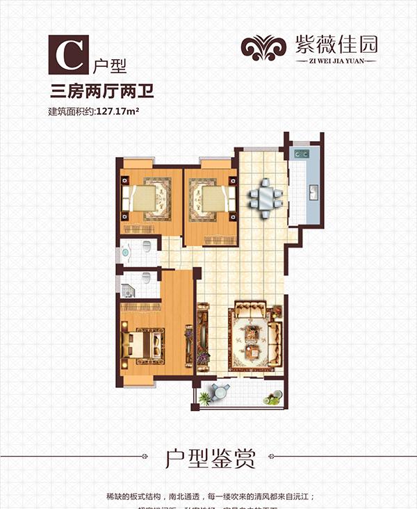 3室2厅2卫-紫薇佳园—户型-C 三室两厅两卫