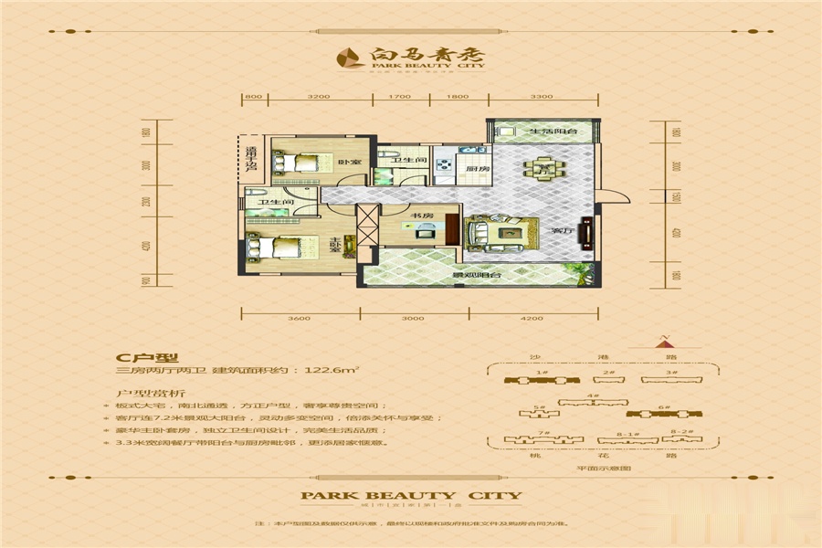 3室2厅2卫-白马·青秀—C户型 三室两厅两卫