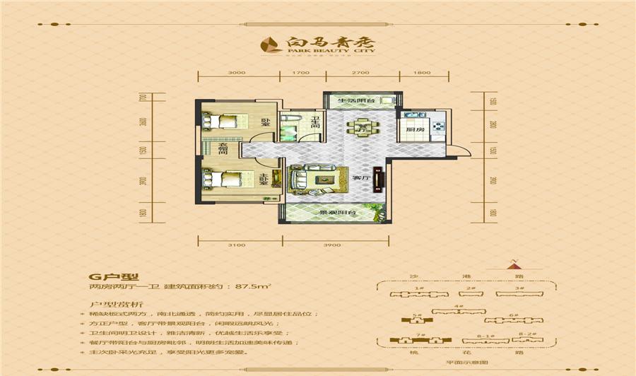 2室2厅1卫-白马·青秀—G户型 两室两厅一卫