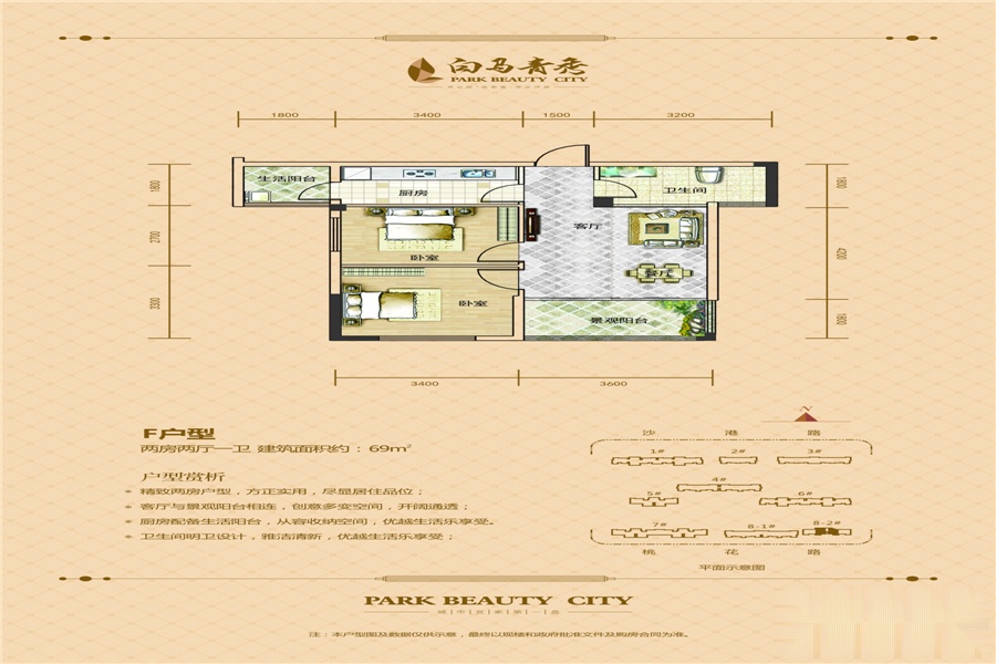 2室2厅1卫-白马·青秀—F户型 两室两厅一卫