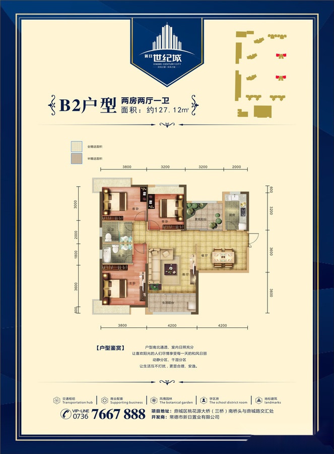 2室2厅1卫-新日世纪城—b2户型两室两厅一卫127平米