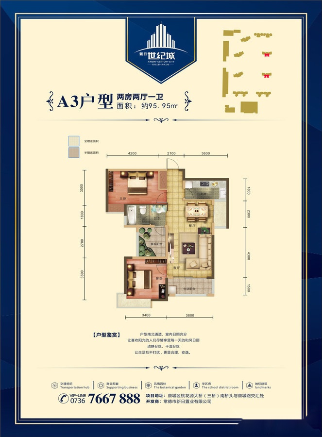 2室2厅1卫-新日世纪城—a3户型两室两厅一卫95平米