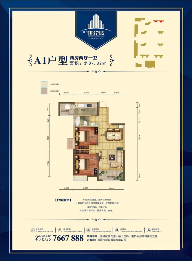2室2厅1卫-新日世纪城—a1户型两室两厅一卫87平米