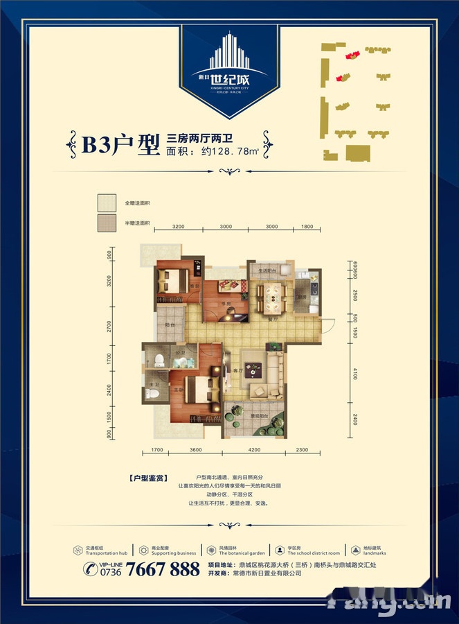 3室2厅2卫-新日世纪城—b3户型三室两厅两卫128平米