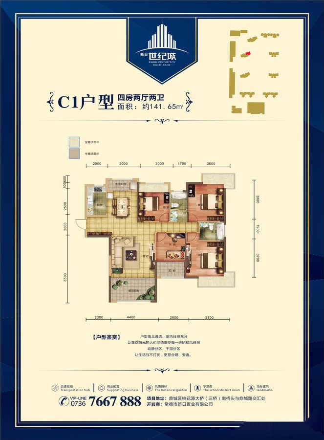 4室2厅2卫-新日世纪城—c1户型四室两厅两卫141㎡