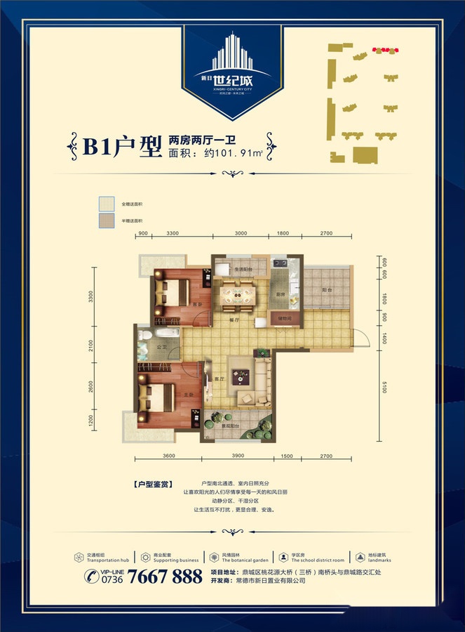 2室2厅1卫-新日世纪城—b1户型两室两厅一卫101平米