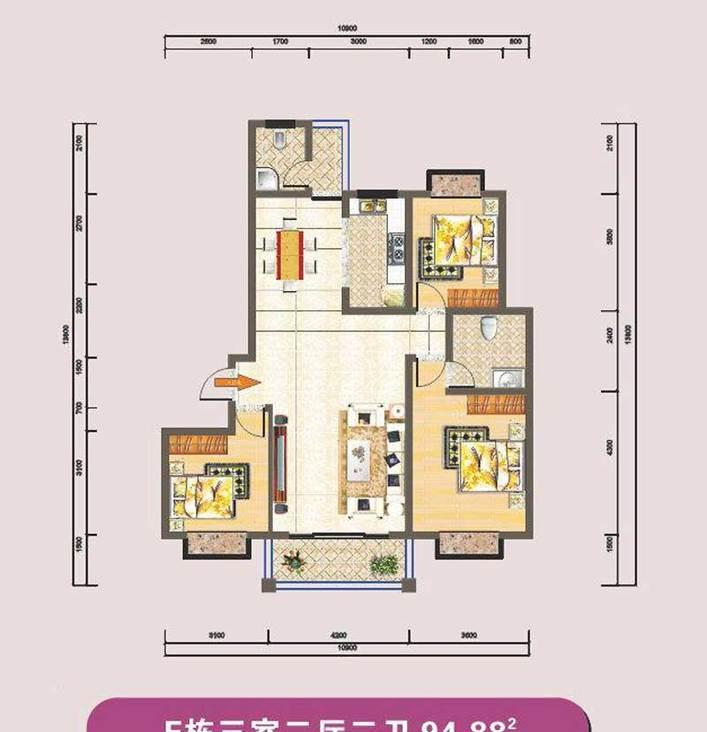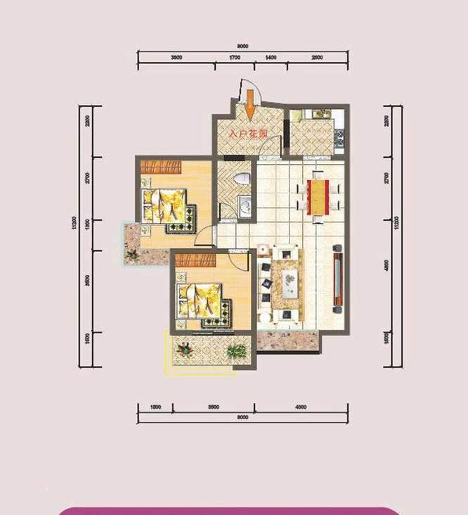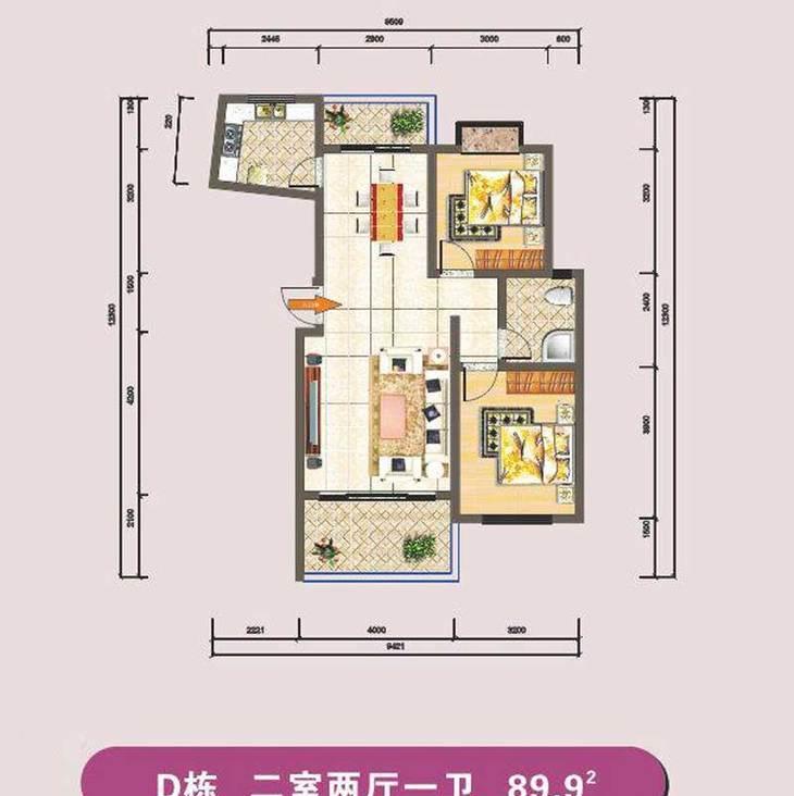 2室2厅1卫-D栋 两室两厅一卫入户花园