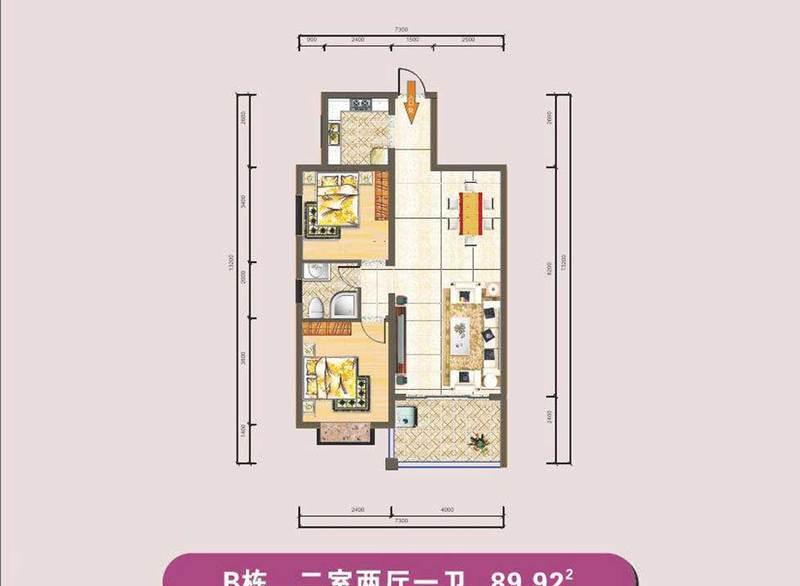 2室2厅1卫-新户型-B1 两室两厅一卫