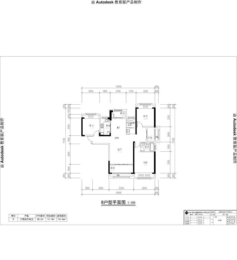 3室2厅2卫-君华御庭B户型平面图