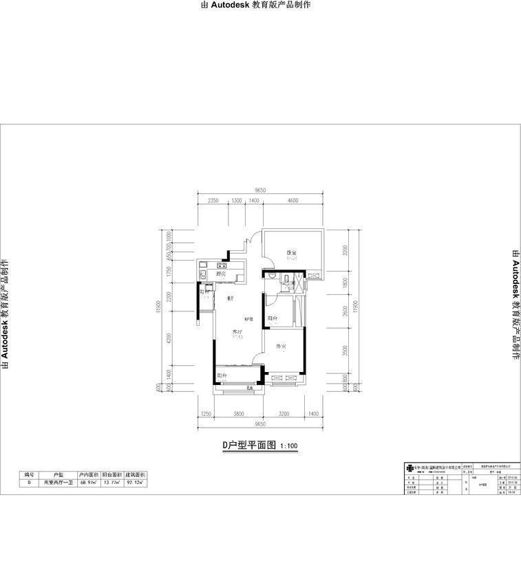 2室2厅1卫-君华御庭D户型平面图
