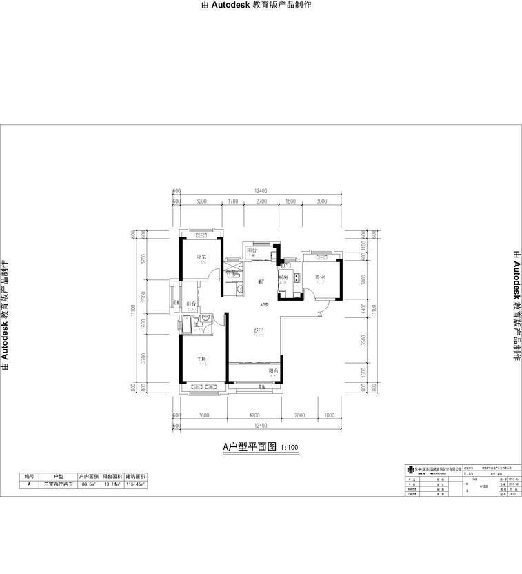3室2厅2卫-君华御庭A户型平面图