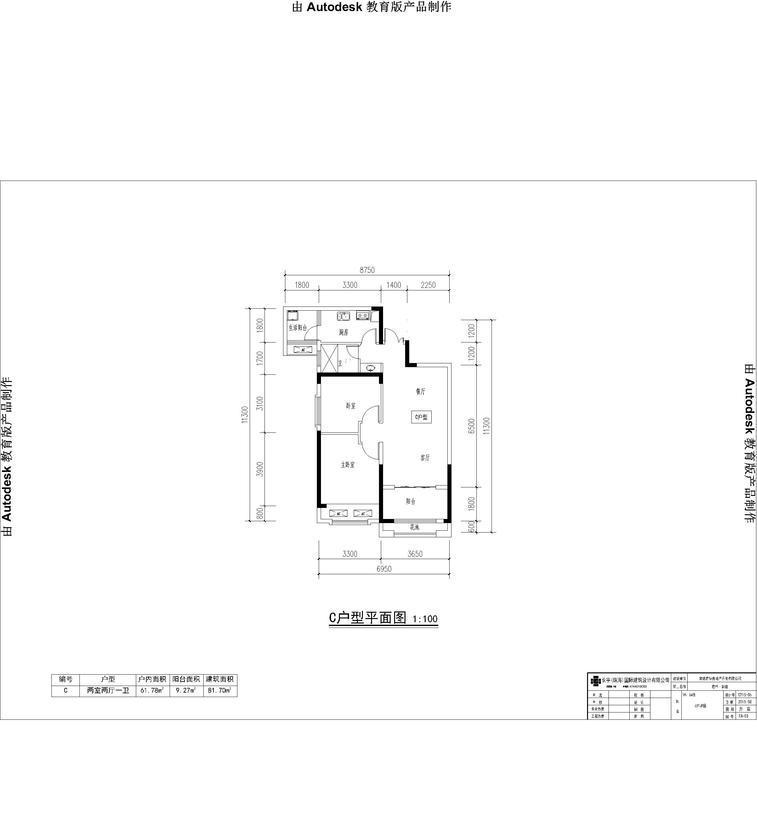 2室2厅1卫-君华御庭C户型平面图