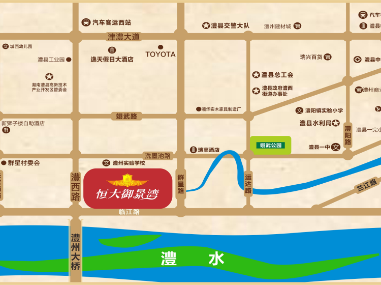 澧水风光带、翊武公园,澧县商业中心近在咫尺。