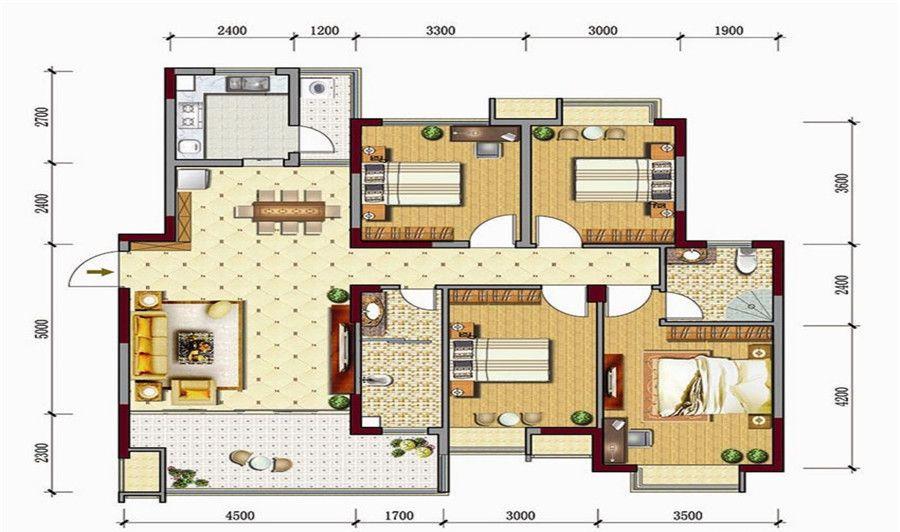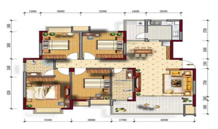 4室2厅2卫-A3户型 160M2 4室2厅2卫