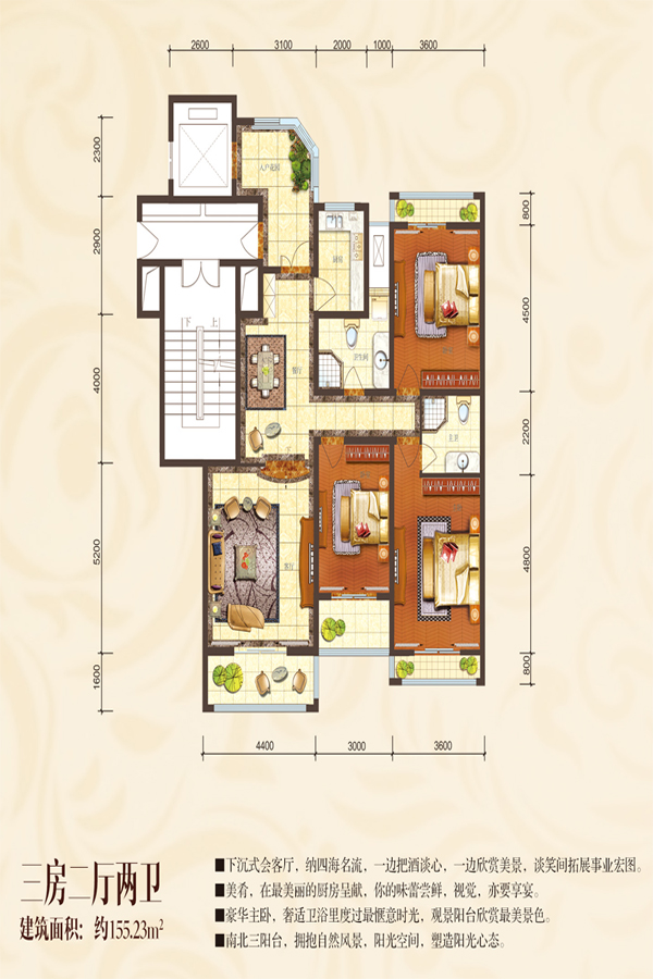 3室2厅2卫-三房两厅两卫155㎡