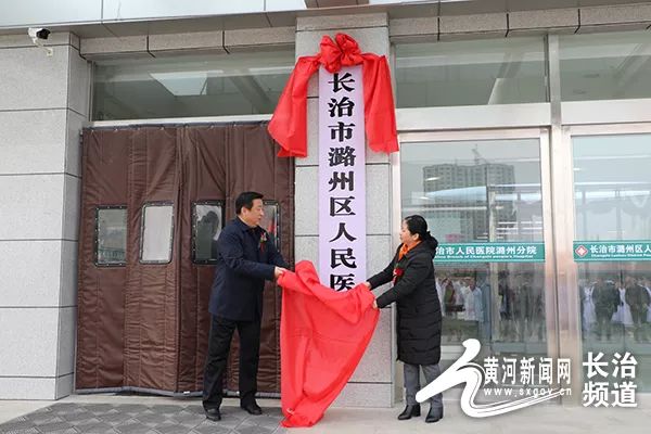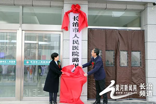 图为:胡勇与郭晓泓为潞州区人民医院揭牌