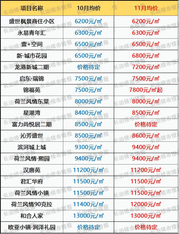 / 上党区 / 上党区11月新房均价6545元/㎡以下为部分具体楼盘10月和11月售价对比: