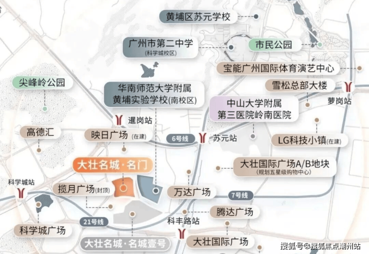 项目雄踞黄埔科学城“芯”地段,2公里集聚商业、政务、发展中心,大壮名城·名门占据城市核心地段——科学城核“芯”黄金2公里(科丰路与开创大道的十字路口交汇处),集聚政务中心、商贸中心、发展中心于一体