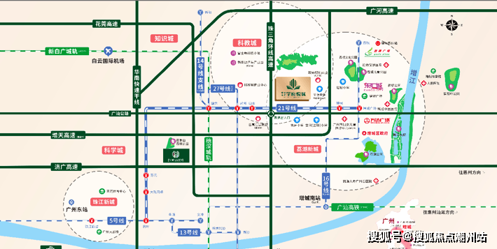 【交通配套】3221多维立体交通,增天高速30分钟天河,深度融入1小时湾区生活圈。3高速:北三环高速、增天高速(在建)、广河高速;2主干道:广汕公路、荔新公路;2地铁:21号线(1站增城广场3站黄埔5站天河、16号线(规划);1城轨:新白广城轨(在建中,预计2021年底试运营),开通后可直达白云机场,接驳穗莞深城际可到东莞西站,深圳北站重要交通要塞。三横三纵多维路网,快速通达主城区。