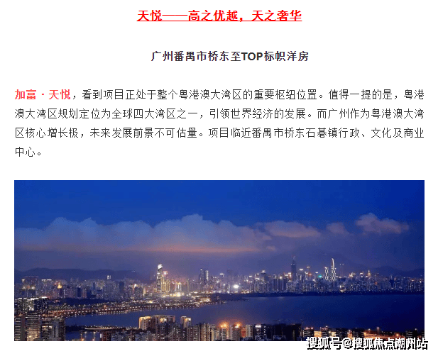 加富花园·天悦正处于整个粤港澳大湾区的重要枢细位置。值得一提的是,粤港澳大湾区规划定位为全球四大湾区之一,引领世界经济的发展。而广州作为粤港澳大湾区核心增长极,未来发展前景不可估量。项目临近番禺市桥东石基镇行政、文化及商业中心。